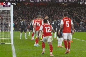 比賽第47分鐘,阿森納右路角球,大馬丁沒能拿到,足球接觸加布里埃爾后入網!
