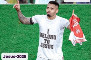 這也是熱蘇斯傷愈復出后打進的首球,進球后他也脫衣慶祝,做出與昔日卡卡同樣的雙手指天動作,印字也均是“我屬于上帝”。