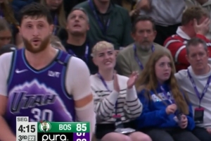小伙超積極啊!沃爾斯籃板被恩比德倒地?fù)屜?立馬反搶并造成犯規(guī)