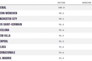 體育資訊12月31日訊 OPTA的球隊實力榜單進行了年終更新,目前實力榜單上排名第一的仍是阿森納。前十名里英超球隊占了一半,前二十名里英超球隊同樣也是占一半。