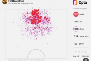 體育資訊12月31日訊 據數據網站OPTA統計,巴薩在2025年60場各項賽事共計打進169粒進球(包括烏龍球)。