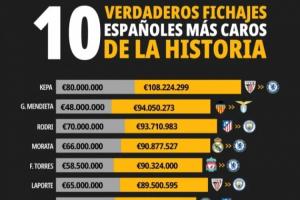 計算通脹后西班牙球員轉(zhuǎn)會費排行: