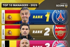體育資訊12月31日訊 2025年世界足壇年終盤點,Score90評選出2025年年度最佳主帥,其中恩里克實至名歸排名榜首,阿森納主帥阿爾特塔排名第2。