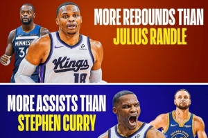 威少目前場均得分高于小薩(15.0>14.5)、場均籃板高于蘭德爾 (7.1>6.9)、助攻比庫里多(5.6>4.3)