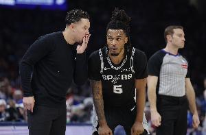賽前,馬刺主帥米奇·約翰遜在接受采訪時表示,自己對卡斯爾今天(拇指受傷)能夠上場持樂觀態度。
