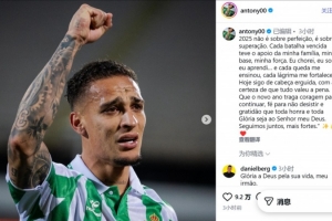 體育資訊1月1日訊 2026年到來,皇家貝蒂斯前鋒安東尼更新社交媒體,總結了2025年。