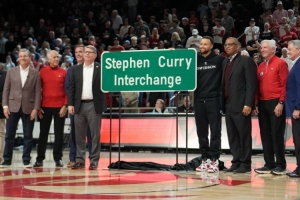 體育資訊1月1日訊 昨日庫里回到了自己的母校戴維森學院,并參加了學校為他舉行的慶祝活動,為“斯蒂芬·庫里30號立交”揭牌并合影留念。