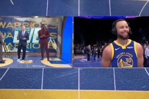 本場賽后,主持人問到了庫里關于自己的“斯蒂芬·庫里立交”此前在戴維森學院揭幕一事。