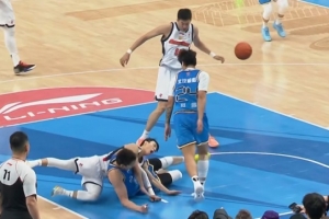 周琦被撞飛后倒地誤傷徐杰膝蓋!后者頭蓋毛巾已被隊(duì)友背下場(chǎng)!