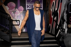 賽前,國王官方曬出了球員的入場照,威少穿著類似于汗衫的服裝入場。