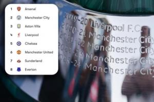 TNT:現今英超前八名,恰好就是歷史上最成功的八支球隊,合計奪得了91個頂級聯賽冠軍????