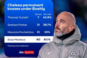 體育資訊1月2日訊 切爾西正式官宣馬雷斯卡離任。自從伯利執掌切爾西以來,球隊已迎來了4任主帥。據天空體育數據統計,在伯利時代的4任主帥中,馬雷斯卡的勝率最高,達61.1%。