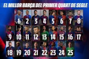 巴薩官方挑選了100名球員(2000年1月1日至2025年12月31日期間在巴塞羅那效力)參加,分為25個(gè)號(hào)碼。也就是說(shuō),每個(gè)號(hào)碼將有4名球員競(jìng)爭(zhēng),其中只有一人能進(jìn)入最終的最佳陣容。