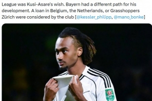 體育資訊1月2日訊 據記者Philipp Kessler報道,富勒姆考慮在本月提前終止拜仁18歲前鋒庫西·阿薩雷的租借合同。