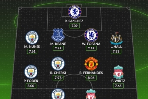 中場:福登(曼城,8.00分)、謝爾基(曼城,7.97分)、B費(曼聯,8.06分)、維爾茨(利物浦,7.65分)