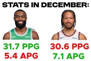 在12月,布倫森場均30.6分7.1助攻,三分命中率40.5%,率隊取得10勝4負的戰績。