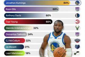 1、喬納森·庫明加(勇士)——84%