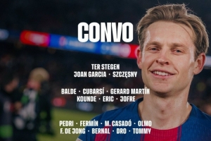 體育資訊1月3日訊 北京時間明天凌晨4點,巴薩將在西甲第18輪比賽中客場對陣西班牙人。巴薩公布了此役的球員名單。佩德里、奧爾莫在列,阿勞霍繼續缺席。