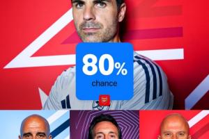 體育資訊01月03日訊 英超賽季已經過半,數據機構OPTA計算了最新的英超奪冠概率,阿森納以80%的奪冠概率遙遙領先,曼城奪冠概率為16.7%,阿斯頓維拉4.2%,利物浦0.1%。