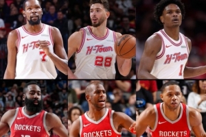 據統計,這是火箭隊史第3次三人賽季場均得分18+。