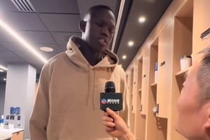 體育資訊1月3日訊 今日馬盧阿奇在更衣室接受了記者鮑仁君的采訪,期間談到了好友楊瀚森。