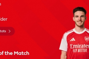 本場比賽賴斯梅開二度,賽后他也當(dāng)選英超官方評選出的本場最佳球員。
