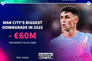 體育資訊1月4日訊 2025年已經過去,《轉會市場》也統計了9大豪門的年度身價上漲和下跌最多球員情況。
