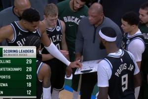 回顧當(dāng)時(shí)的場(chǎng)景,小凱文·波特表示:“老里當(dāng)時(shí)正設(shè)計(jì)戰(zhàn)術(shù),揚(yáng)尼斯覺(jué)得換防太多了,于是他就給我們畫(huà)了那個(gè)戰(zhàn)術(shù),我們執(zhí)行了。”