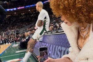 庫茲馬女友、知名模特Winnie Harlow也出現在場邊觀戰,還時不時拿出手機給場上的庫茲馬拍照。她在賽后更新社媒,曬出了觀賽的照片,并寫道:“在戀愛里上頭了。”