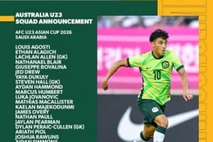 體育資訊1月4日訊 今日,亞足聯(lián)官方公布參加U23亞洲杯各隊(duì)球員名單及球員號(hào)。本次澳大利亞U23自預(yù)選賽以來(lái),再度與U23國(guó)足同組,他們的球員名單和球衣號(hào)如下: