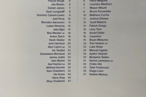 后衛:達洛特、馬茲拉維、德里赫特、馬奎爾、利桑德羅、馬拉西亞、多爾古、約羅、盧克-肖、海文、泰勒·弗雷德克森、迭戈·萊昂