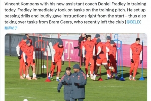 體育資訊1月4日訊 據《圖片報》報道,拜仁新任助理教練丹尼爾·弗拉德利今日協助孔帕尼,參與球隊訓練。