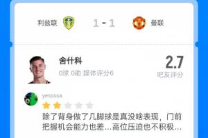 近期舍什科已經(jīng)遭遇了9場進(jìn)球荒,本賽季他加盟曼聯(lián)后17場比賽僅打入兩球,他的表現(xiàn)也遭到了球迷的口誅筆伐,本場比賽吧友給舍什科打出了2.7的超低分。