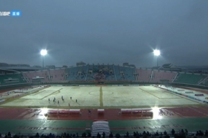本場比賽,延邊龍鼎主場積雪嚴重,草坪都被染成了白色。