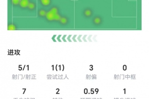 賽后技術(shù)統(tǒng)計(jì)數(shù)據(jù)顯示,加克波本場(chǎng)比賽5射1正,1次錯(cuò)失進(jìn)球,4次地面對(duì)抗3次成功,3次爭(zhēng)頂成功1次,獲評(píng)6.9分。