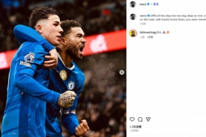 詹姆斯曬出自己和進球功臣恩佐的慶祝照,并配文:“這幾天很艱難,但我們團結一心,堅持了下來。這是征途中的一處難關。一路平安,藍軍球迷們,你們今晚的表現太棒了!”