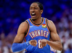 上半場,雷霆球員杰倫·威廉姆斯穩定輸出,打了16分鐘7投5中,拿到10分3籃板2助攻,有3失誤,正負值+4。