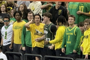 今日俄勒岡大學(xué)以67-63戰(zhàn)勝萊斯大學(xué),取得開季兩連勝,小吧來到現(xiàn)場觀戰(zhàn),看到現(xiàn)場有很多林葳的球迷,一個(gè)外國人還穿著同曦球衣。