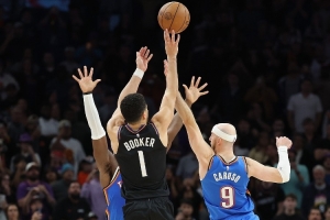 體育資訊1月5日訊 NBA常規賽,太陽在主場以108-105擊敗雷霆。比賽最后時刻,布克不講理三分絕殺。