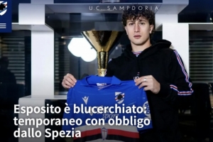 當地時間1月4日,桑普多利亞俱樂部在官網發布公告稱:“桑普多利亞宣布,以租借加強制買斷的方式從斯佩齊亞簽下了球員薩爾瓦托雷·埃斯波西托。在買斷之后,桑普多利亞將和薩爾瓦托雷·埃斯波西托簽約至2030年6月30日,并且俱樂部還有權再優先續約一年。”