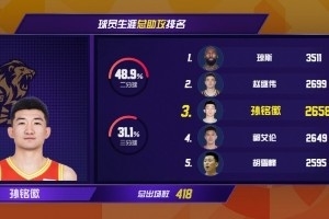 在浙江方興渡與北京北汽的強(qiáng)強(qiáng)對話中,主場作戰(zhàn)的浙江方興渡以77-74險(xiǎn)勝對手,將連勝場次擴(kuò)大到8場。球隊(duì)外線核心孫銘徽出戰(zhàn)32分04秒,送出11次助攻。此役過后,孫銘徽職業(yè)生涯總助攻數(shù)達(dá)到2658次,超越郭艾倫、升至CBA歷史助攻榜第三位。
