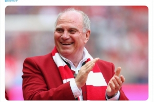 拜仁官方社媒曬出赫內(nèi)斯的照片,配文:“我們的名譽主席今天迎來74歲生日,生日快樂!”