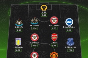 體育資訊1月5日訊 WhoScored列出了英超第20輪最佳陣容,庫尼亞、賴斯、格拉利什在列。