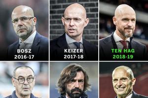 據統計,自2016年進入阿賈克斯一線隊以來,德里赫特已經先后在9位主教練(滕哈赫兩次)手下踢球,每個賽季都會碰上更換教練的情況。