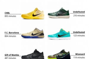 排名第2的是Kobe 4 Protro Barcelona(巴塞羅那),上腳時長804分鐘。