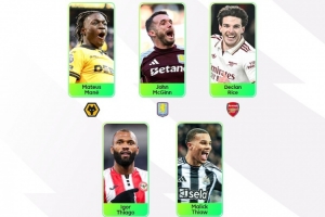 體育資訊1月5日訊 英超第20輪聯賽已經完賽,英超官方也評出了本輪最佳球員候選5人名單: