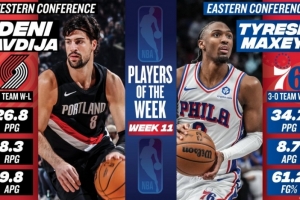 體育資訊1月6日訊 今日NBA官方宣布,開拓者球星阿夫迪亞和76球星馬克西分別當(dāng)選本賽季第11周西部和東部周最佳球員。