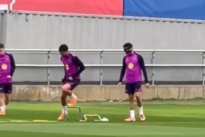 David Ibá?ez在社交媒體曬出巴薩訓練視頻,并配文寫道:“巴薩今日進行訓練,備戰對陣塞爾塔的比賽。埃里克-加西亞佩戴面具訓練,克里斯滕森明日也可能隨隊出征。”