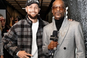 美國傳奇說唱歌手狗爺今日將擔任快船主場比賽的NBC現場評論員,他賽前簡單采訪了庫里,兩位傳奇合影留念。