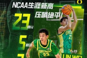 林葳打出個人來到NCAA賽場之后的最佳一戰,全場比賽他上陣33分鐘14投8中,三分12中6、罰球2中1,砍下23分1籃板5助攻2搶斷,得分、出場時間和三分球等多項數據創個人NCAA生涯新高。